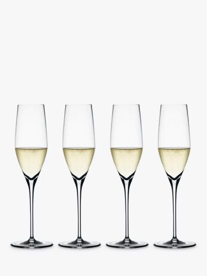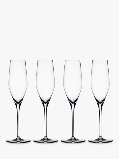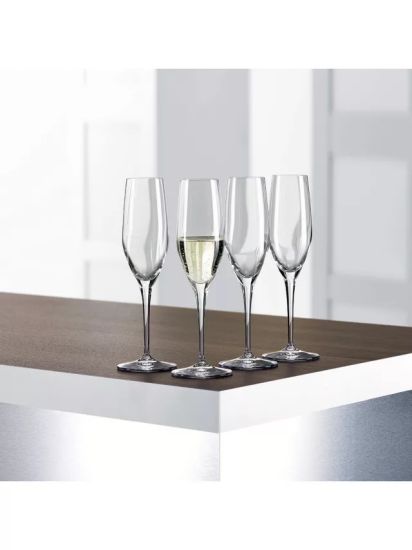 - A set of four glassware collection champagne glasses. The shape is perfect for enjoying champagne, prosecco and sparkling wines, and the narrow design retains the bubbles.
