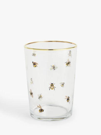 - A perfect choice for nature lovers, this tumbler features a buzzing bee. Perfect for soft drinks and cocktails, this tumbler features a screen-printed design on sturdy glass and a shiny metal rim.