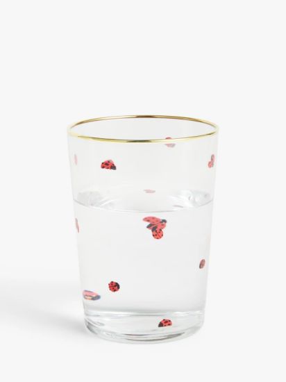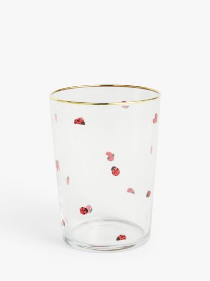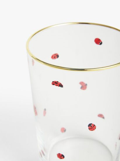 - A natural lover's choice, this glass features a screen-printed ladybug and a gold rim. Perfect for soft drinks and cocktails.