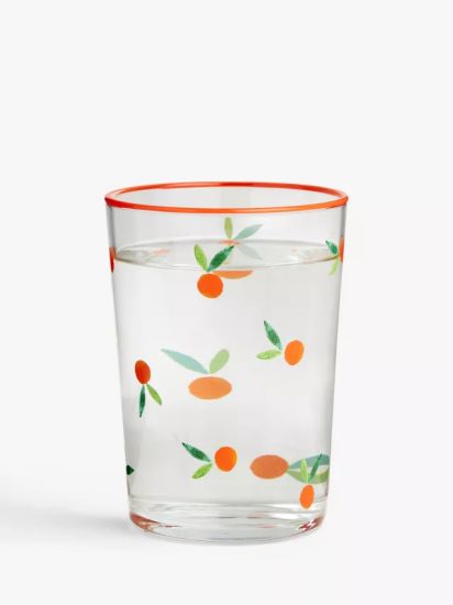 Orange Print Glass Tumbler, 510ml, Orange/Clear