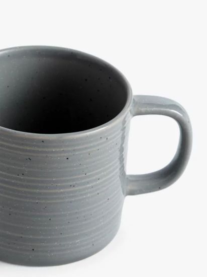 - A set of four modern mugs made from stoneware. The mugs are coated with a reactive speckled glaze and are dishwasher and microwave safe for everyday use.